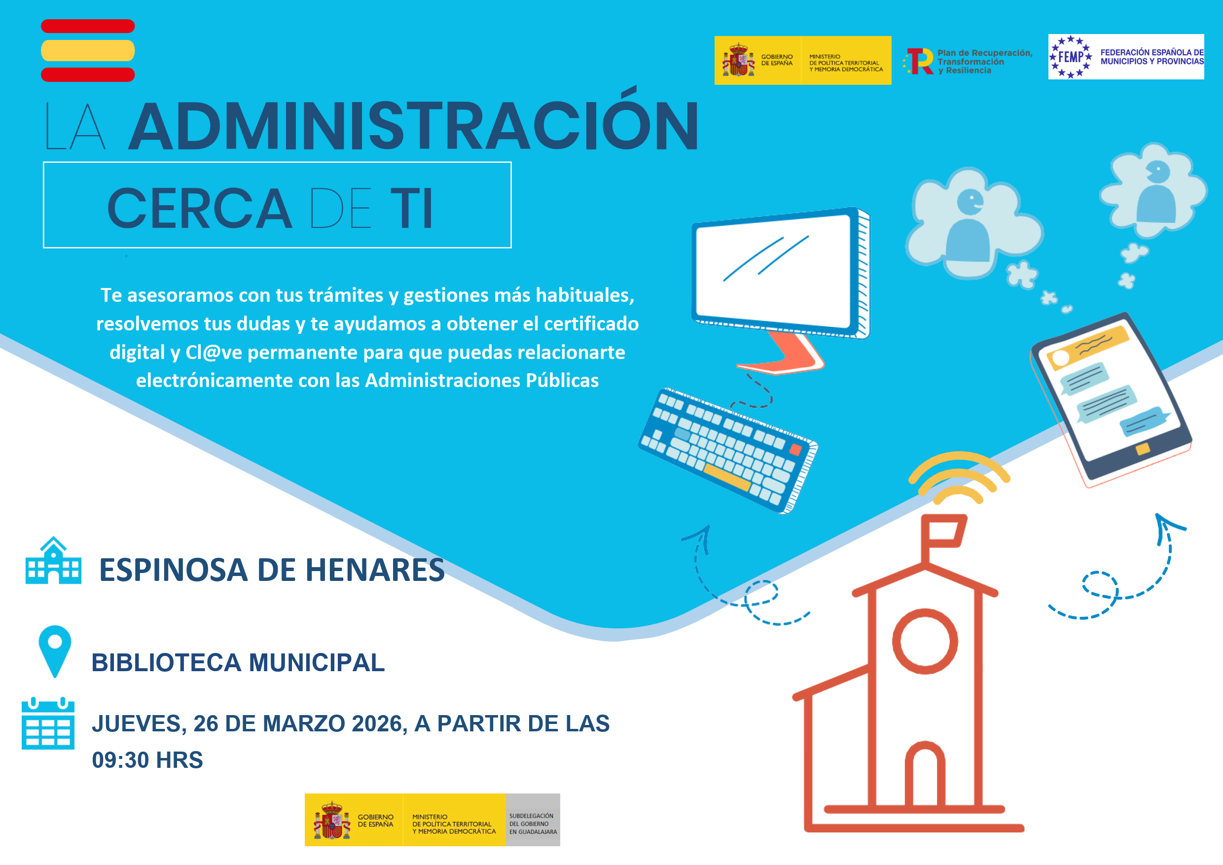 Este 𝘀𝗲𝗿𝘃𝗶𝗰𝗶𝗼 tiene como objetivo acercar los servicios de la 𝗔𝗱𝗺𝗶𝗻𝗶𝘀𝘁𝗿𝗮𝗰𝗶𝗼́𝗻 a tu 𝗹𝗼𝗰𝗮𝗹𝗶𝗱𝗮𝗱, facilitando a la 𝗰𝗶𝘂𝗱𝗮𝗱𝗮𝗻í𝗮 la obtención de 💻 𝗺𝗲𝗱𝗶𝗼𝘀 𝗱𝗲 𝗶𝗱𝗲𝗻𝘁𝗶𝗳𝗶𝗰𝗮𝗰𝗶𝗼́𝗻 𝘆 𝗳𝗶𝗿𝗺𝗮 𝗱𝗶𝗴𝗶𝘁𝗮𝗹, como el certificado electrónico 💯