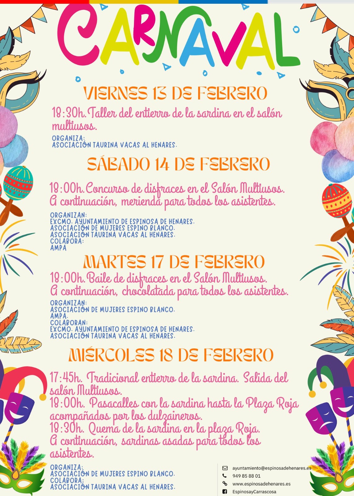 🎭🎊¡¡LLEGA EL CARNAVAL A ESPINOSA DE HENARES!! 🎊🎭