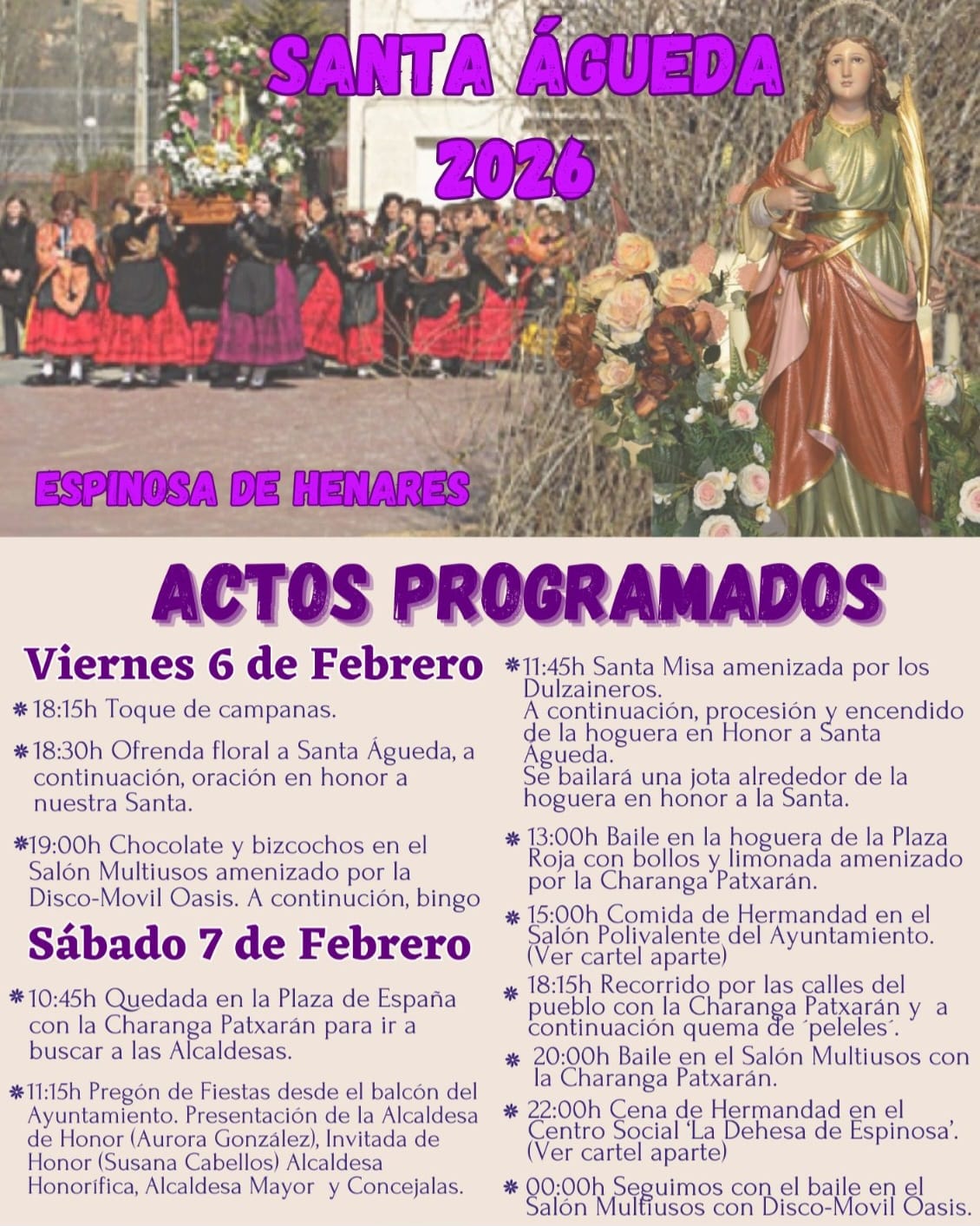 💜🔥 SANTA ÁGUEDA 2026 – ESPINOSA DE HENARES 🔥💜